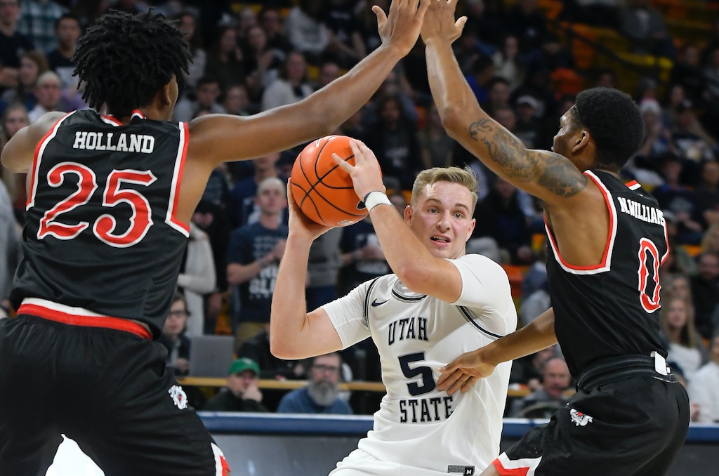 “I think it says a lot about our guys, I think we held them scoreless for three-and-a-half minutes in overtime and then we found enough ways to get enough baskets,” Utah State coach Craig Smith said.