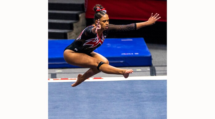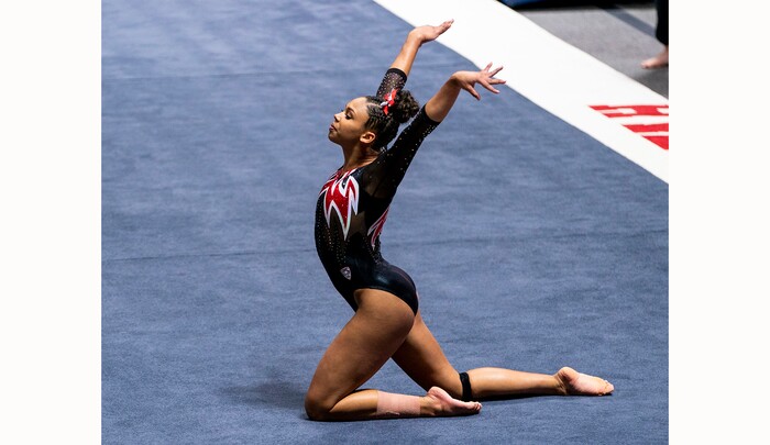 (Rick Egan | The Salt Lake Tribune) Jaedyn Rucker competes on the floor, in PAC-12 gymnastics action between The University of Washington and The University of Utah at Jon M. Huntsman Center in Salt Lake City, on Saturday, Jan. 30, 2021.