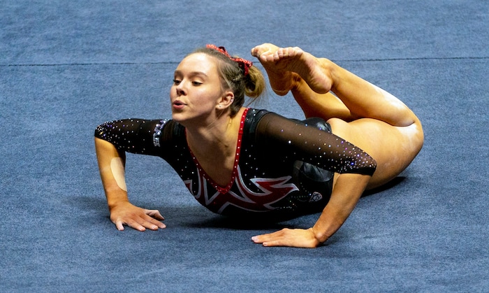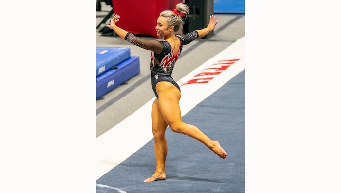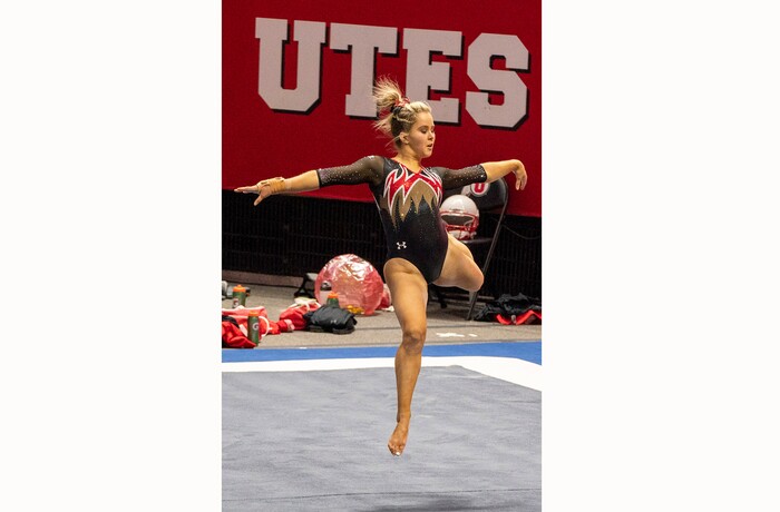 (Rick Egan | The Salt Lake Tribune) Sydney Soloski competes on the floor, in PAC-12 gymnastics action between The University of Washington and The University of Utah at Jon M. Huntsman Center in Salt Lake City, on Saturday, Jan. 30, 2021.