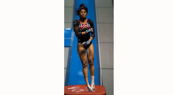 (Rick Egan | The Salt Lake Tribune) Jaedyn Rucker competes on the vault, in PAC-12 gymnastics action between The University of Washington and The University of Utah at Jon M. Huntsman Center in Salt Lake City, on Saturday, Jan. 30, 2021.