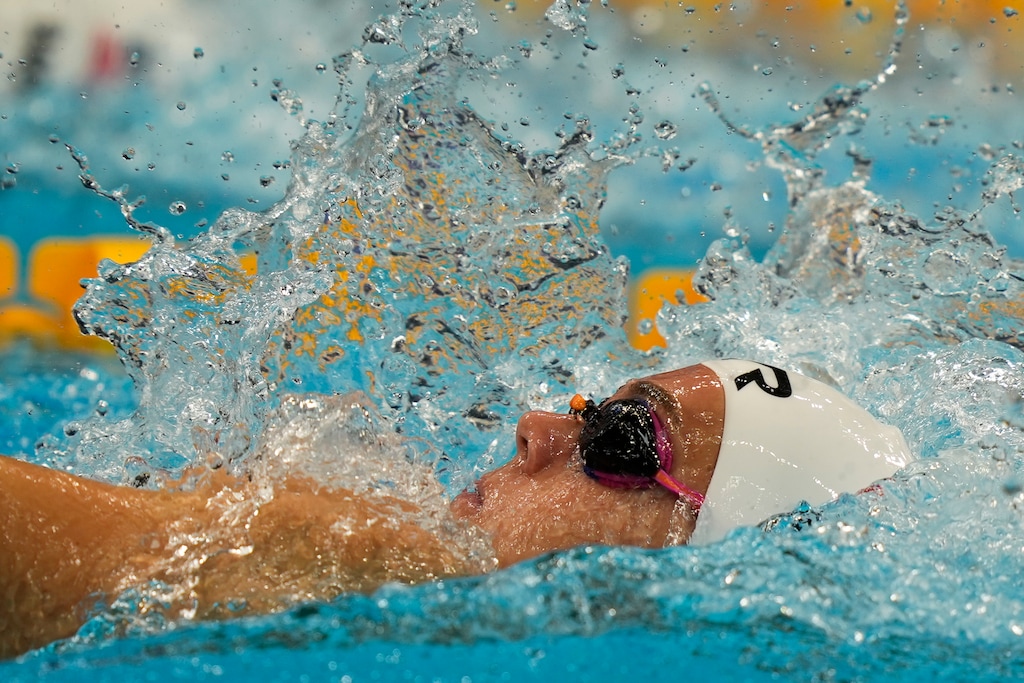 (Jeff Roberson | AP) Rhyan White participates in the women's 200 backstroke during wave 2 of the U.S. Olympic Swim Trials on Saturday, June 19, 2021, in Omaha, Neb.
