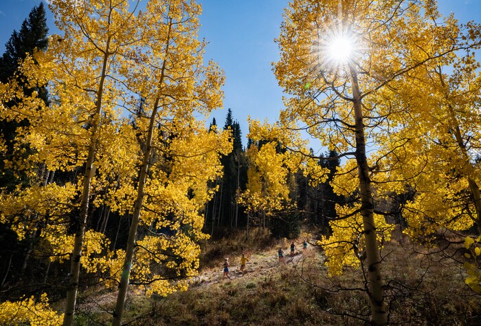 (Francisco Kjolseth | The Salt Lake Tribune) Trees explode with fall color as people make their way along the Red Pine Road Trail at the top of Millcreek Canyon on Thursday, Oct. 7, 2021.
