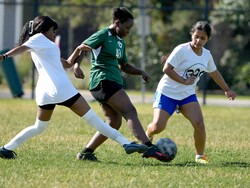 “The minute you put a soccer ball out here, look how much more energy and life came out,” she said, watching from the bleachers as the girls scrimmage.