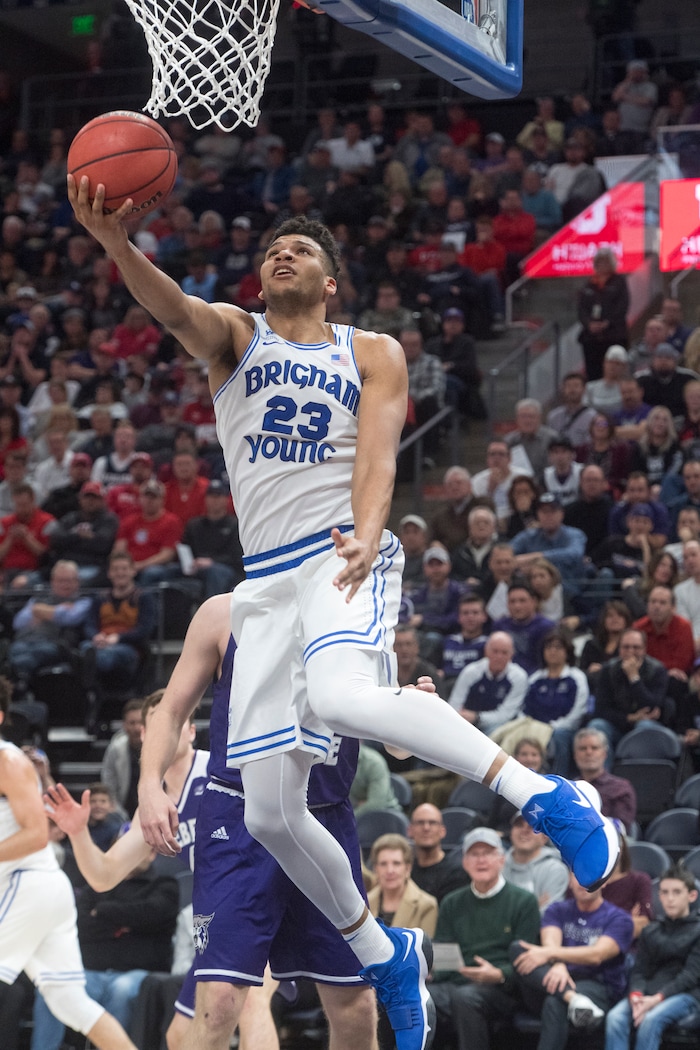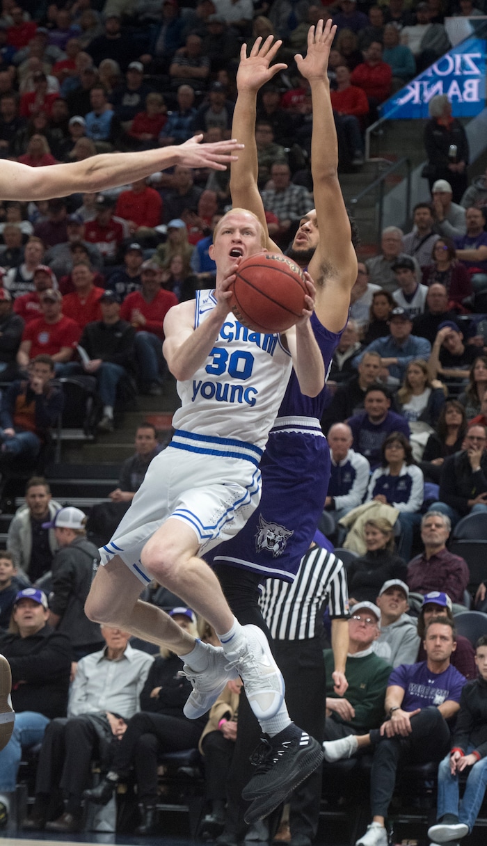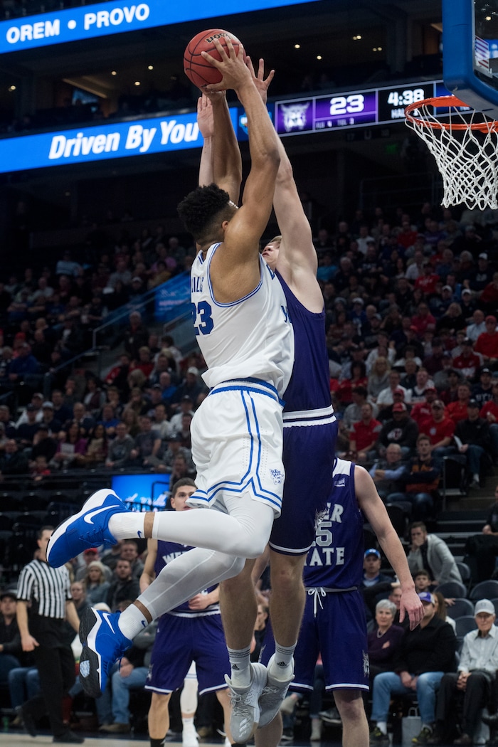 Weber State trailed by two and had the ball after a timeout with 53 seconds remaining, but Yoeli Childs swatted away an offering by Dusty Baker, and the Cougars survived.