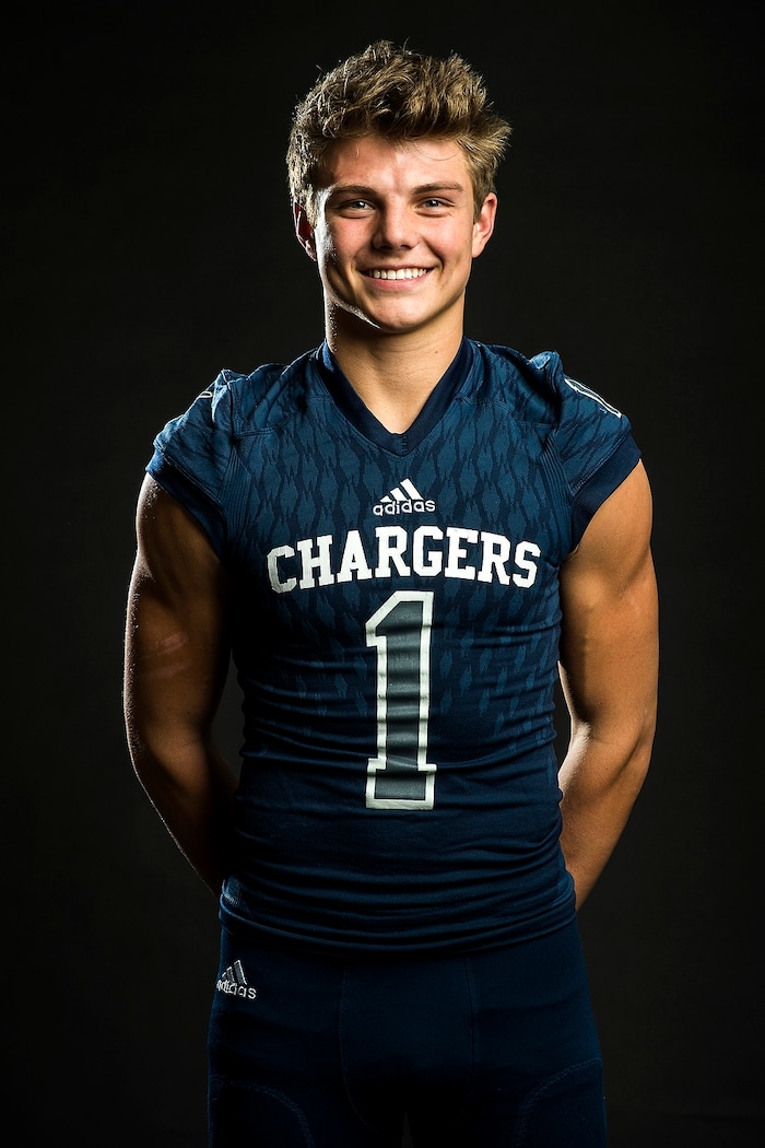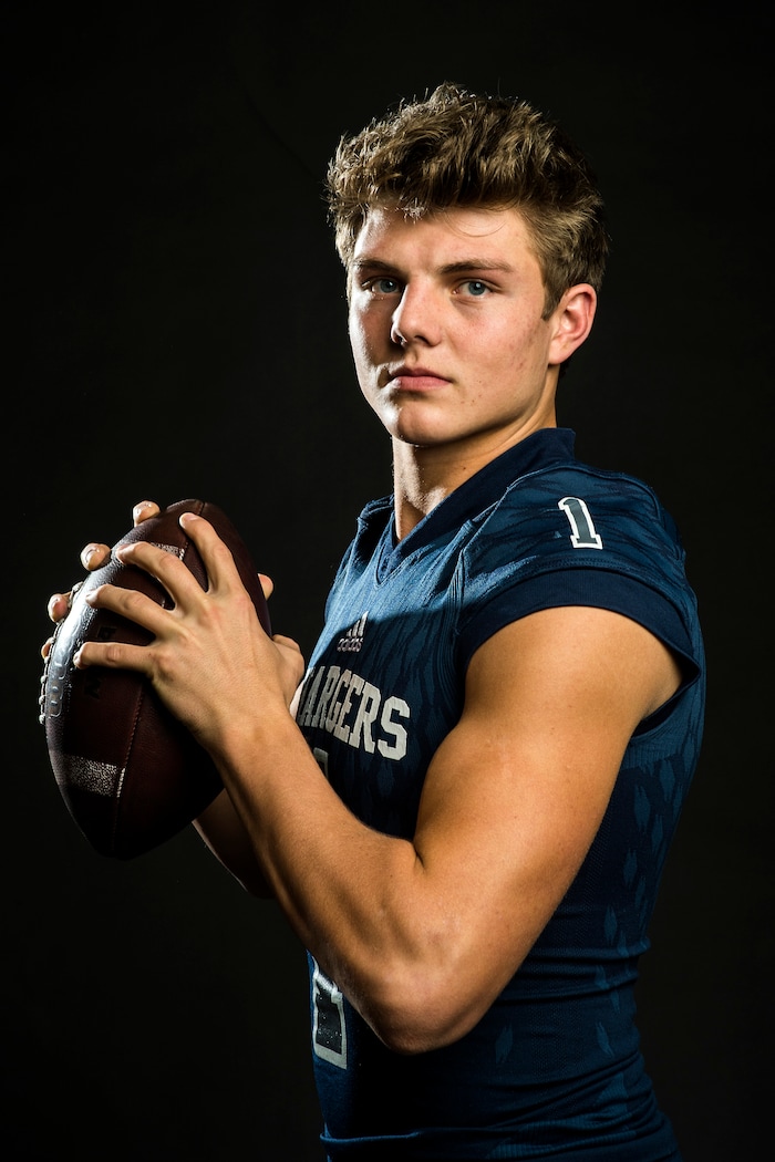 (Chris Detrick | The Salt Lake Tribune) Corner Canyon quarterback Zach Wilson poses for a portrait Wednesday, December 13, 2017.