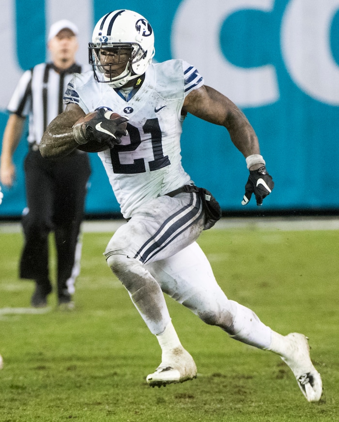 Brigham Young running back Jamaal Williams (21) to run for a 36-yard touchdown for the Cougars, in the Poinsettia Bowl, at Qualcomm Stadium in San Diego, December 21, 2016.