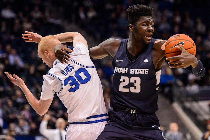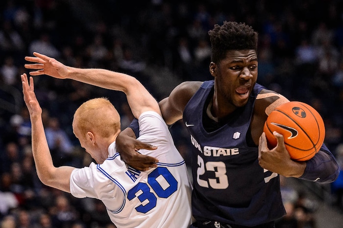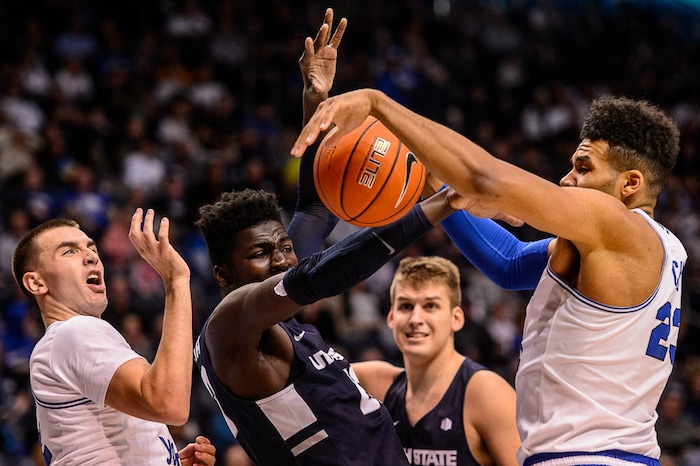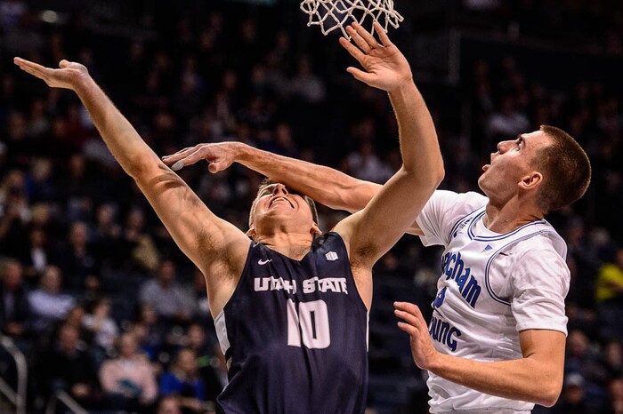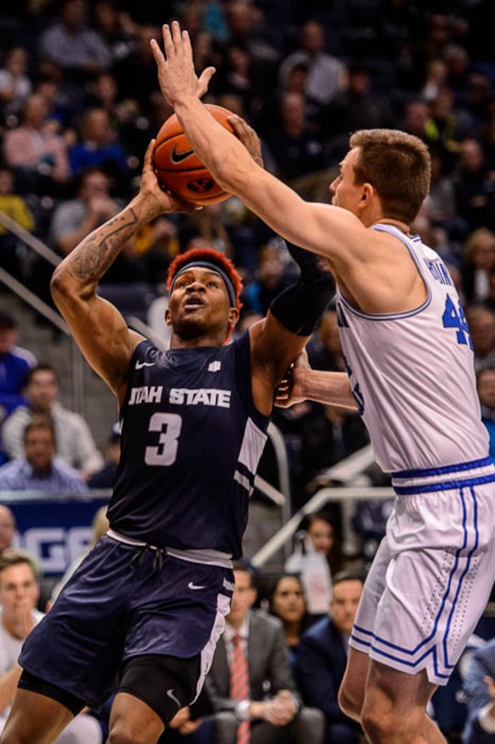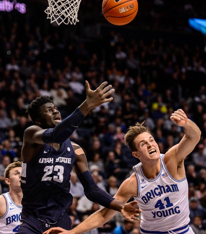 That drew a big groan from USU coach Craig Smith, whose team won the rebounding battle 34-24 and shot a 48.3 percent, but couldn’t stop BYU on the other end.