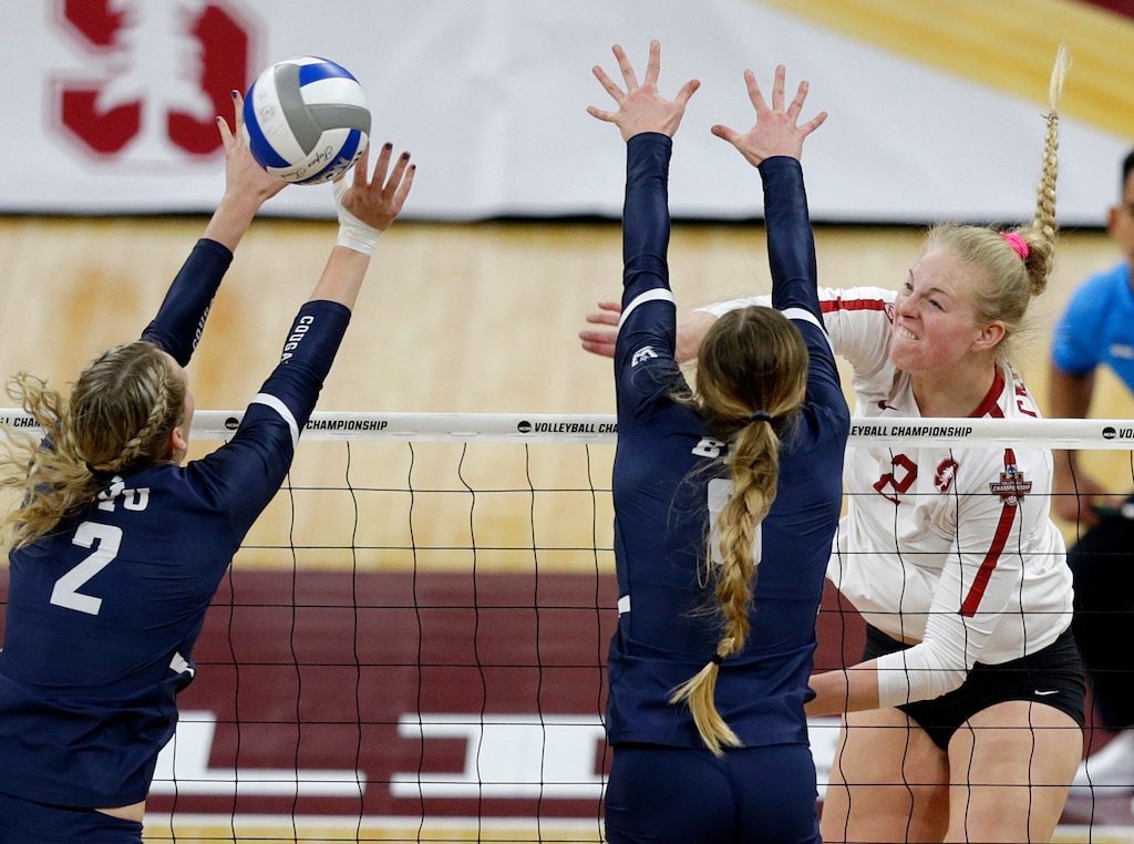 The Cardinal out-blocked BYU 17-4 and got 11 kills and nine blocks from Audriana Fitzmorris; Tami Alade had 14 of those blocks, one shy of a career-high. Morgan Hentz added six digs.