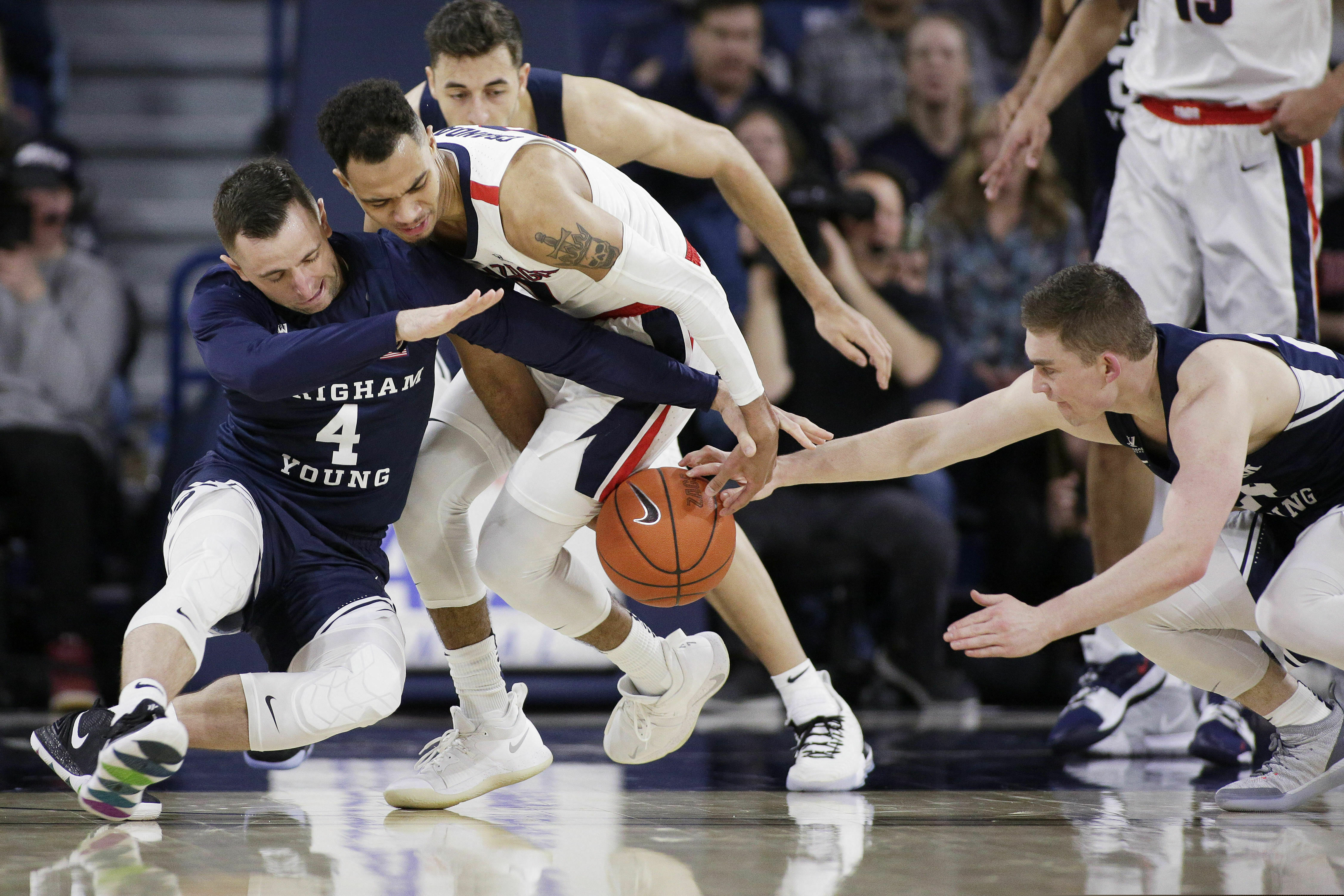 Gonzaga, which extended the longest winning streak in the country to 18 games, ended the first half on a 6-0 run. The Zags shot 57 percent in the first half, including 5 of 9 from 3-point range, and scored 15 points off eight BYU first-half turnovers.