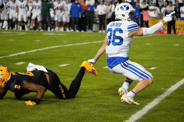 On the opening kickoff, Talmage Gunther forced a fumble from Arizona State’s kick returner, which was recovered by Hayden Livingston. Three plays later, BYU scored — just 37 seconds into the game.