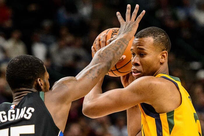 (Trent Nelson | The Salt Lake Tribune) Utah Jazz guard Rodney Hood (5) passes the ball as the Utah Jazz host the Milwaukee Bucks, NBA basketball in Salt Lake City Saturday November 25, 2017.