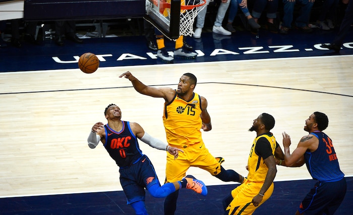 Take a minute to process this information: The team with Russell Westbrook, Paul George and Carmelo Anthony is going home for the Western Conference semifinals. The Jazz, who were 19-28 in January, advance to take on the top-seeded Houston Rockets.