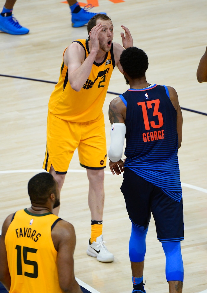 On defense, Gobert helped neutralize the advantage. After eclipsing 30 points in three previous games in the series, George was mostly a non-factor on offense in the first three quarters, missing 10 of his first 12 shots. The Jazz held the Thunder to 41 percent shooting from the field in the first half, and Mitchell tied it up at 41 with a layup on the last Jazz shot before the intermission.