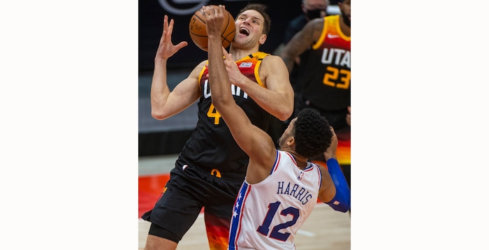 He was at 19 points by halftime. He dropped in a baker’s dozen in the third quarter as the Jazz turned a small advantage into a substantial one. He reached the 40-point mark — two short of his career high — midway through the fourth with yet another big triple that slowed a Sixers rally.