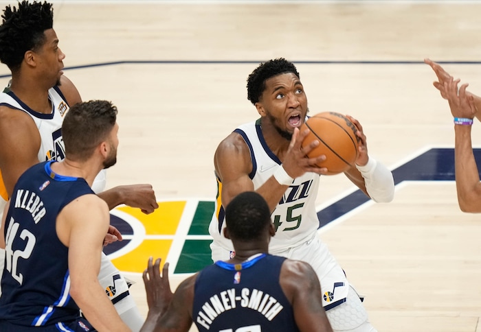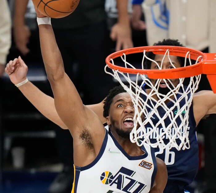 After Doncic appeared to win the game with a dagger 3 that put Dallas up 99-95 with 39.6 seconds to play, Mitchell answered. He drove down the court, missed an extended layup try, but went up high for the offensive rebound, then converted the putback and earned a foul against Doncic, actually making it (the Jazz as a team were a woeful 26 of 42 from the line for the game).
