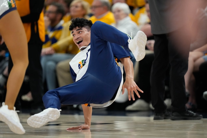 (Francisco Kjolseth | The Salt Lake Tribune) The Jazz dancers put on a show during a time out in Game 4 of an NBA basketball first-round playoff series, Saturday, April 23, 2022, in Salt Lake City.