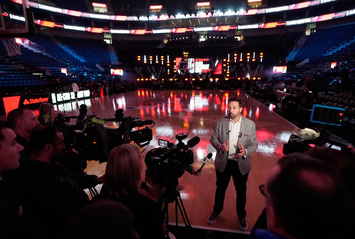 (Francisco Kjolseth | The Salt Lake Tribune) Joey Graziano, Senior Vice President, Head of Global Event Strategy and Development for the NBA, answers a few questions during a news conference at Vivint Arena in Salt Lake City on Wednesday Feb. 15, 2023, to discuss the All-Star weekend.