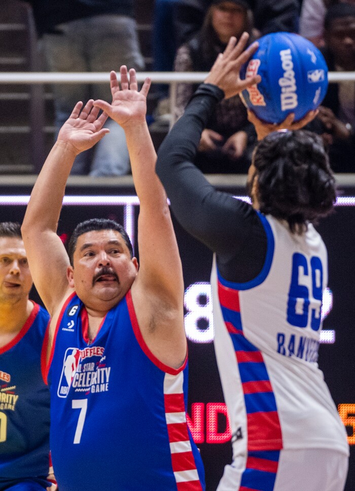 (Rick Egan | The Salt Lake Tribune) Guillermo Rodriguez reacts during team introductions, during the NBA All-Star Celebrity Game, at the Jon M. Huntsman Center, on Friday, Feb. 17, 2023.
