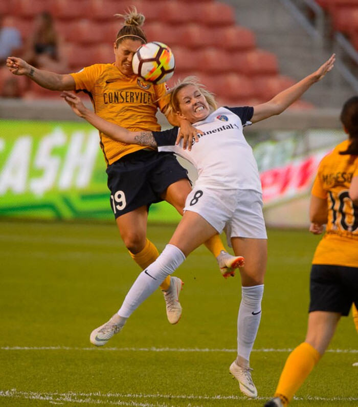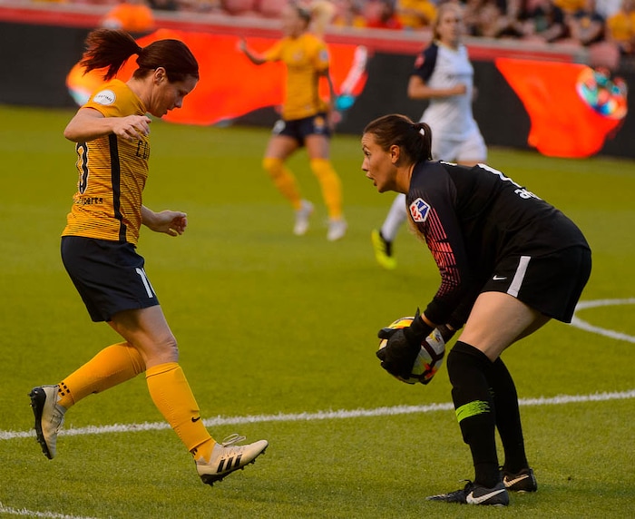 The Courage’s best scoring opportunity in the first half came early, as Lynn Williams took a header after a corner kick that was stopped by Utah goalkeeper Nicole Barnhart, who made her first start of the season in the place of Abby Smith, who took a hard fall in last Saturday’s 2-1 loss to Orlando and missed Friday’s game.