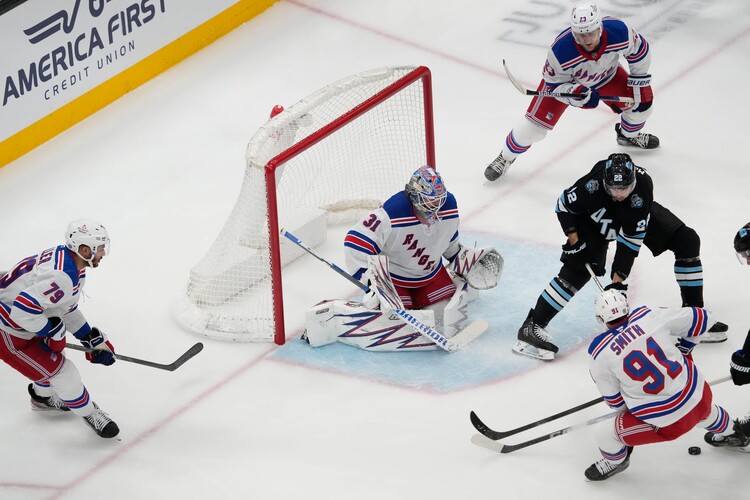 The team was quick to give up a goal in the third, and short-handed nonetheless. An Alexis Lafrenière cross-checking penalty at the buzzer put Utah on the power play to start the final stanza, but the Rangers were the only ones to capitalize. Reilly Smith snapped one off the rush at 00:28 to make it 3-3.