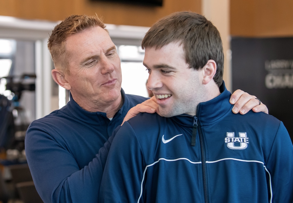 The Utah State football team — coaches, players, anybody not actively involved in the life-saving measures — gathered and took a knee. And as a hush fell over the group, head coach Blake Anderson started to shout at Davis until a chorus of deep-throated screams rallied behind him.