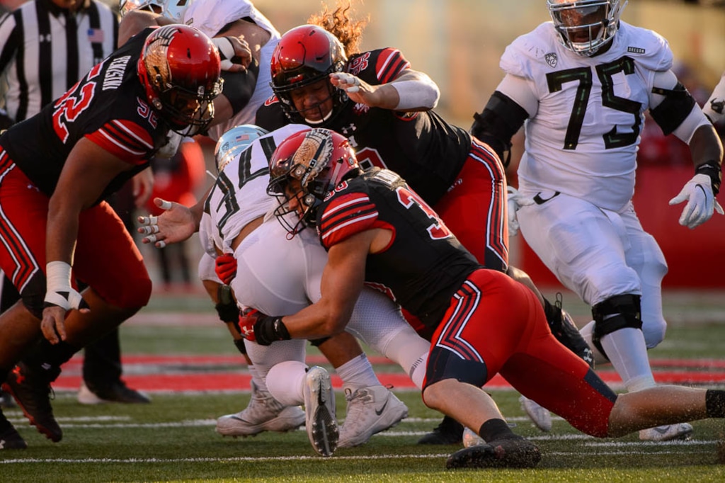 Utah trailed Oregon 25-22 after a blocked punt led to the Ducks' go-ahead touchdown. Having struggled in the third quarter, redshirt freshman quarterback Jason Shelley completed passes on three straight plays, leading to a touchdown. Tupai’s third-down sack and Johnson’s fourth-down pass deflection got the ball back, then running back Armand Shyne ate up most of the remaining time in a 32-25 win.
