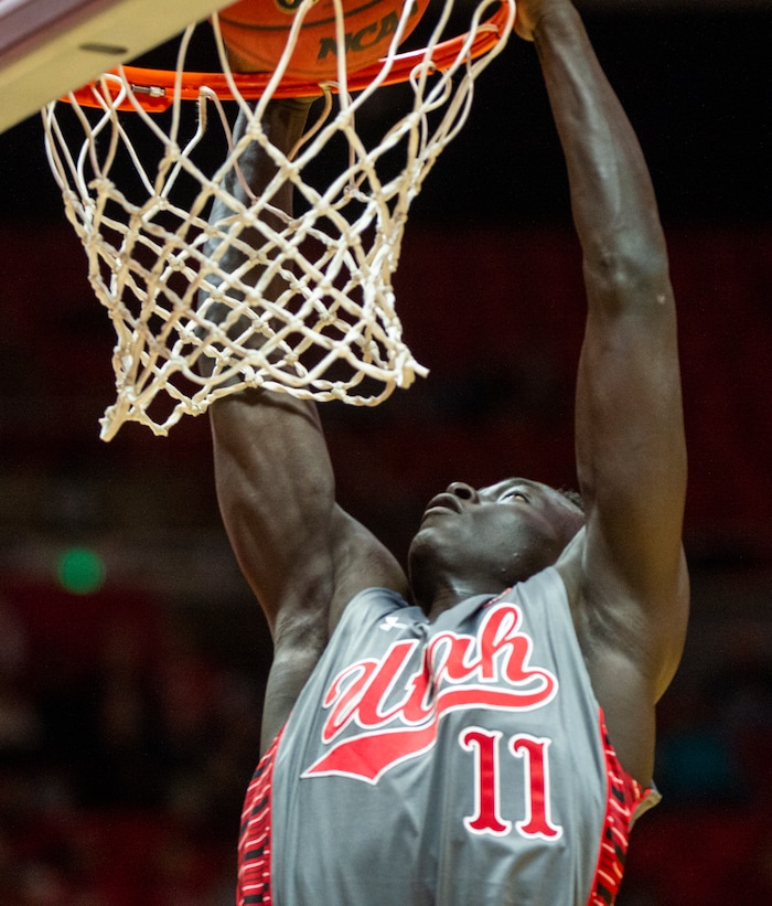 (Rick Egan | The Salt Lake Tribune) Utah Utes forward Both Gach (11) dunks the ball, in PAC-12 basketball action between the Utah Utes and the Colorado Buffaloes at the Jon M. Huntsman Center, Sunday, Jan. 20, 2019.