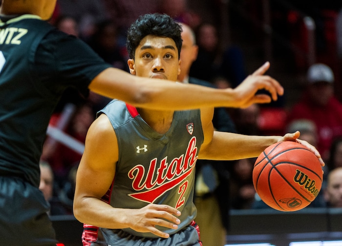 (Rick Egan | The Salt Lake Tribune) Utah Utes guard Sedrick Barefield (2) drives inside with the ball, in PAC-12 basketball action between the Utah Utes and the Colorado Buffaloes at the Jon M. Huntsman Center, Sunday, Jan. 20, 2019.
