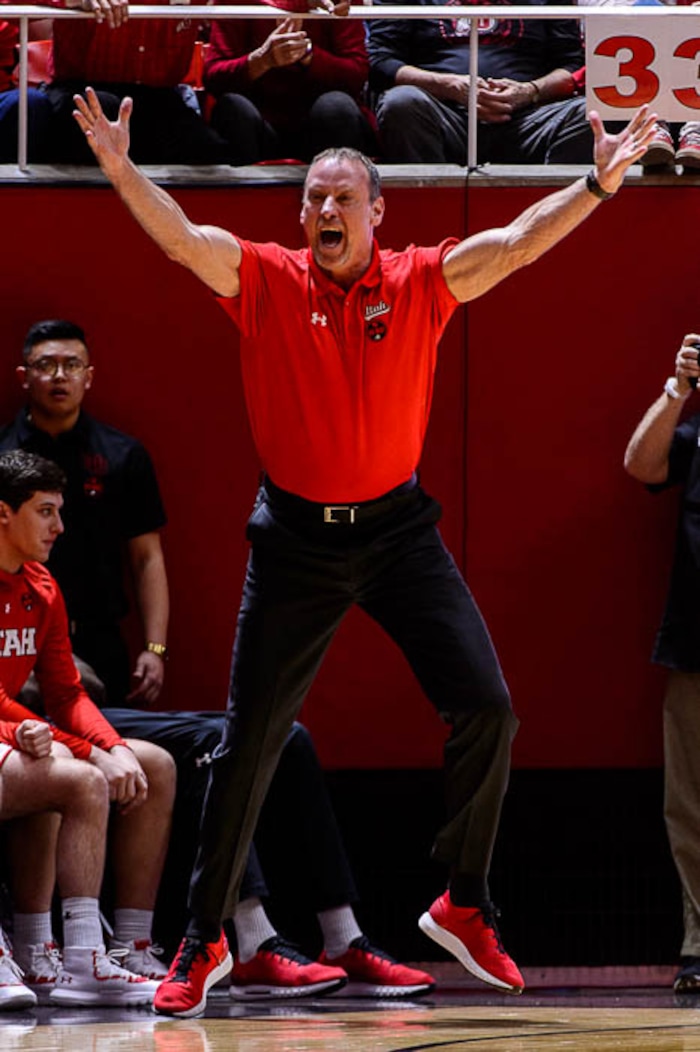 Utah coach Larry Krystkowiak as Utah hosts Oregon State, NCAA basketball in Salt Lake City on Saturday Feb. 2, 2019.