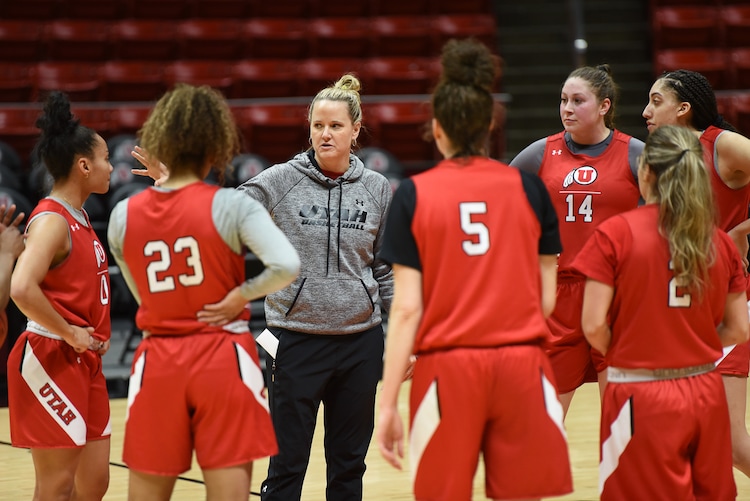 (Francisco Kjolseth | The Salt Lake Tribune) Utah women's basketball head coach Lynne Roberts talks to her team during practice at the Jon Huntsman Center on Wed. Jan. 2, 2019, as they prepare for their next game on Friday. The team is having one of the best starts in program history at 12-0.
