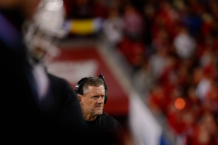 Kyle Whittingham, as Utah faces Oregon in the Pac-12 football championship game in Santa Clara, Calif., on Friday Dec. 6, 2019.