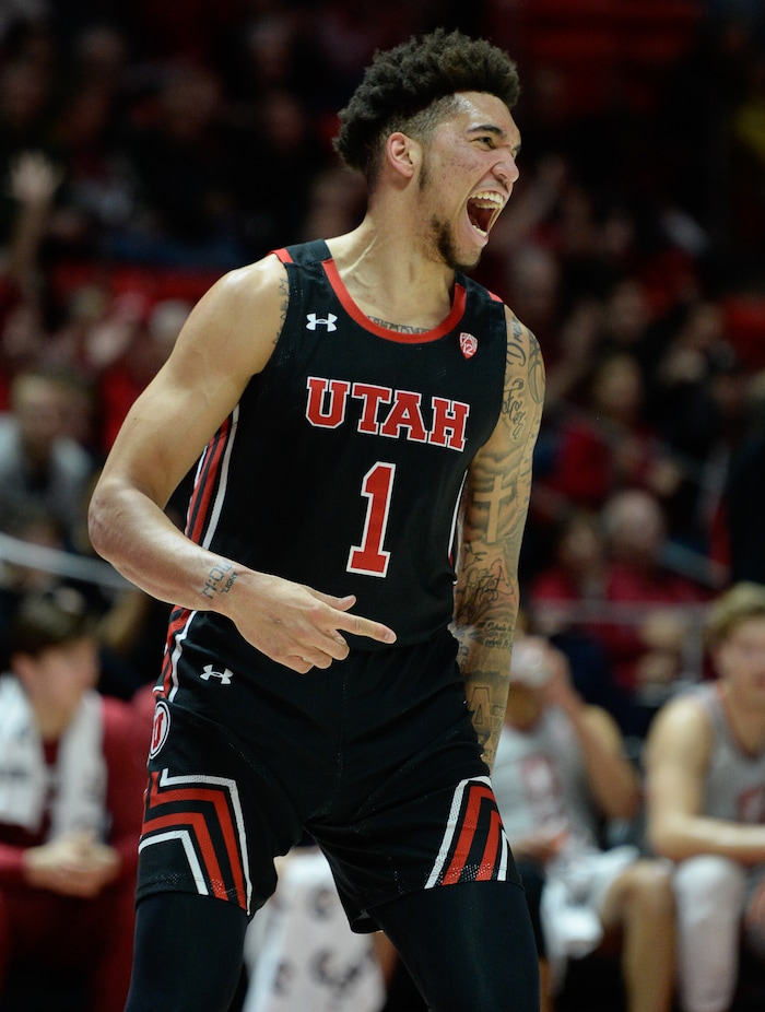 (Francisco Kjolseth | The Salt Lake Tribune) Utah Utes forward Timmy Allen (1) celebrates a dunk as the University of Utah hosts Stanford in NCAA menÕs basketball, Thursday, Feb. 6, 2020, at the Jon M. Huntsman Center in Salt Lake City.