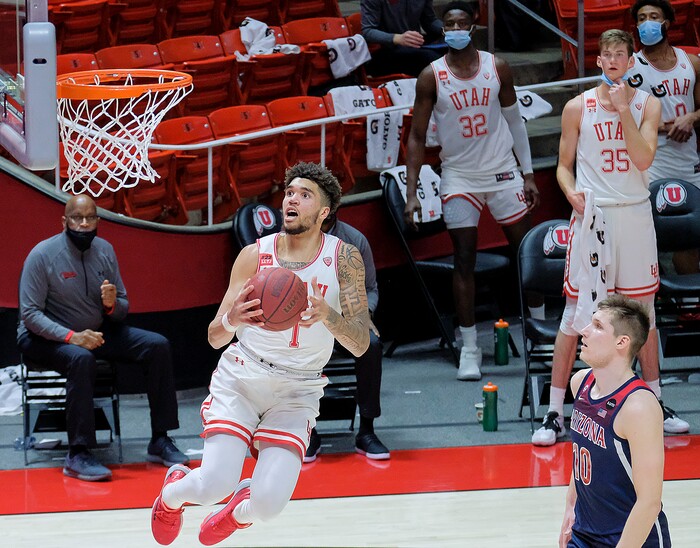 (Leah Hogsten | The Salt Lake Tribune) as the University of Utah host the Arizona Wildcats, Feb. 4, 2021 at the Jon M. Huntsman Arena.