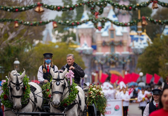 To further Covey’s latter point, Disneyland is open for business, and it was crowded Monday, in between Christmas and New Year’s, even as omicron continues to spread across the United States. Not nearly everyone lining Main Street, or in any other part of the park, was in a mask, but in fairness, there are no Disney or Orange County protocols for masks outdoors. Indoors was a different story as everyone inside the Opera House — coaches, players, Rose Bowl officials, Disneyland officials, and media — was required to wear a mask.