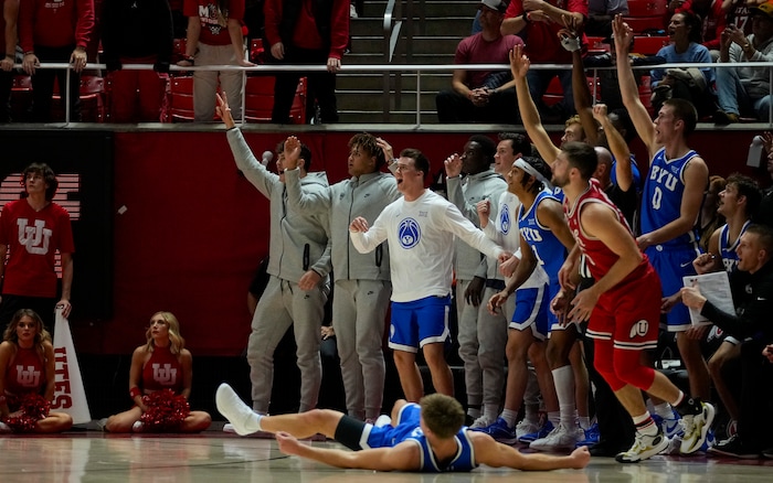 Utah had a front line of 7-foot, 7-1 and 6-8. BYU simply didn’t have an answer as guards switched onto big men and the trio to Branden Carlson, Keba Keita and Lawson Lovering put up 30 points and 17 rebounds.