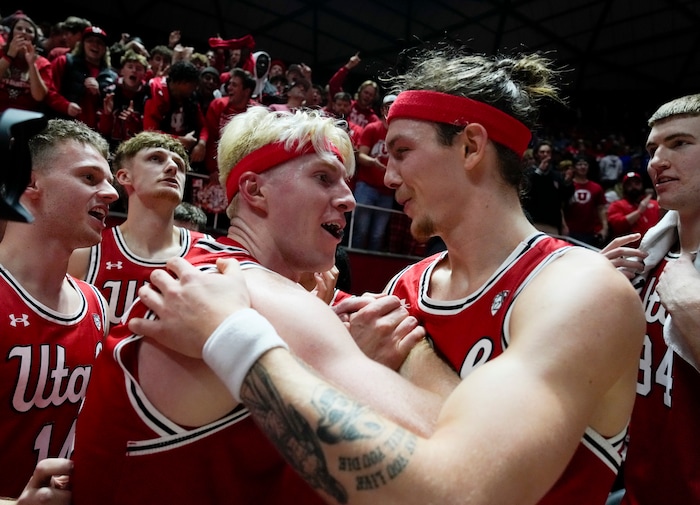 As he walked around after the final buzzer, he tried to soak it all in. He pumped his arms to the crowd and waved them on. He saw the bear hug that Hunter Erickson’s mother was giving out (another player who transferred from BYU to Utah).